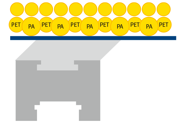 傳統造紙成型網(wǎng)輥側的PA和PET布置: 新型Villforth VEXTREME?纖維造紙成型網(wǎng):