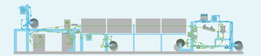 這條生產(chǎn)線(xiàn)為T(mén)ECHMA 1涂布試驗機提供了整個(gè)涂層工藝和系統組合。此外,該生產(chǎn)線(xiàn)設計用于度展示高速飛行拼接操作的機會(huì )。